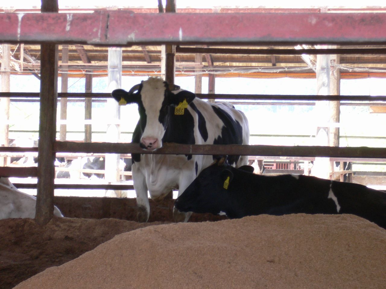 牧場では牛と睨めっこです。