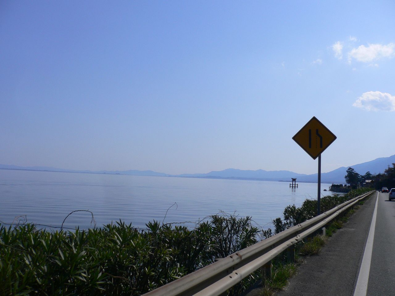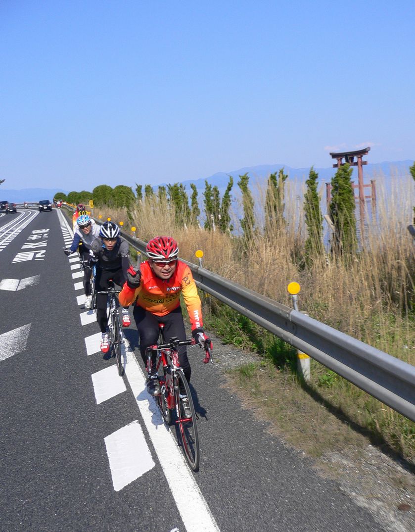 今津からは湖岸道路で信号のストレスなく向かい風に抗いながら走ります。