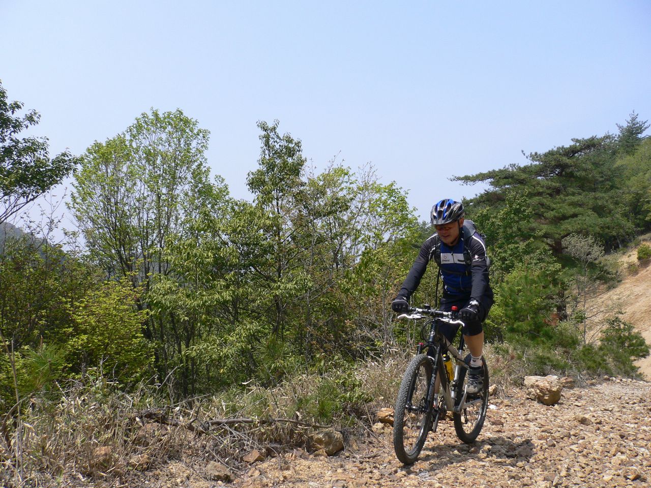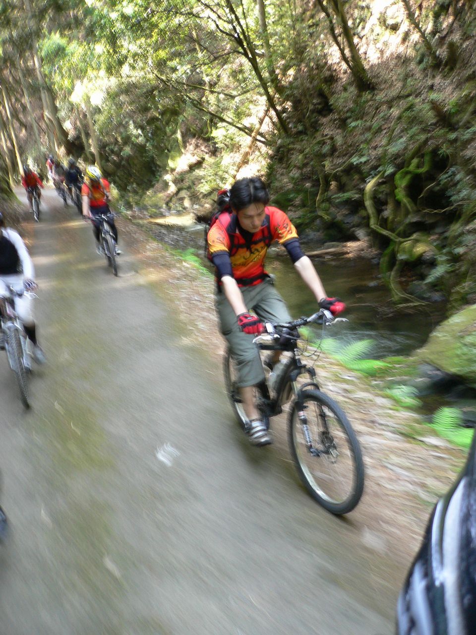 ガタガタ ゴロゴロな上に木漏れ日で路面状況がわかりにくいことこの上なかったですわ。笑