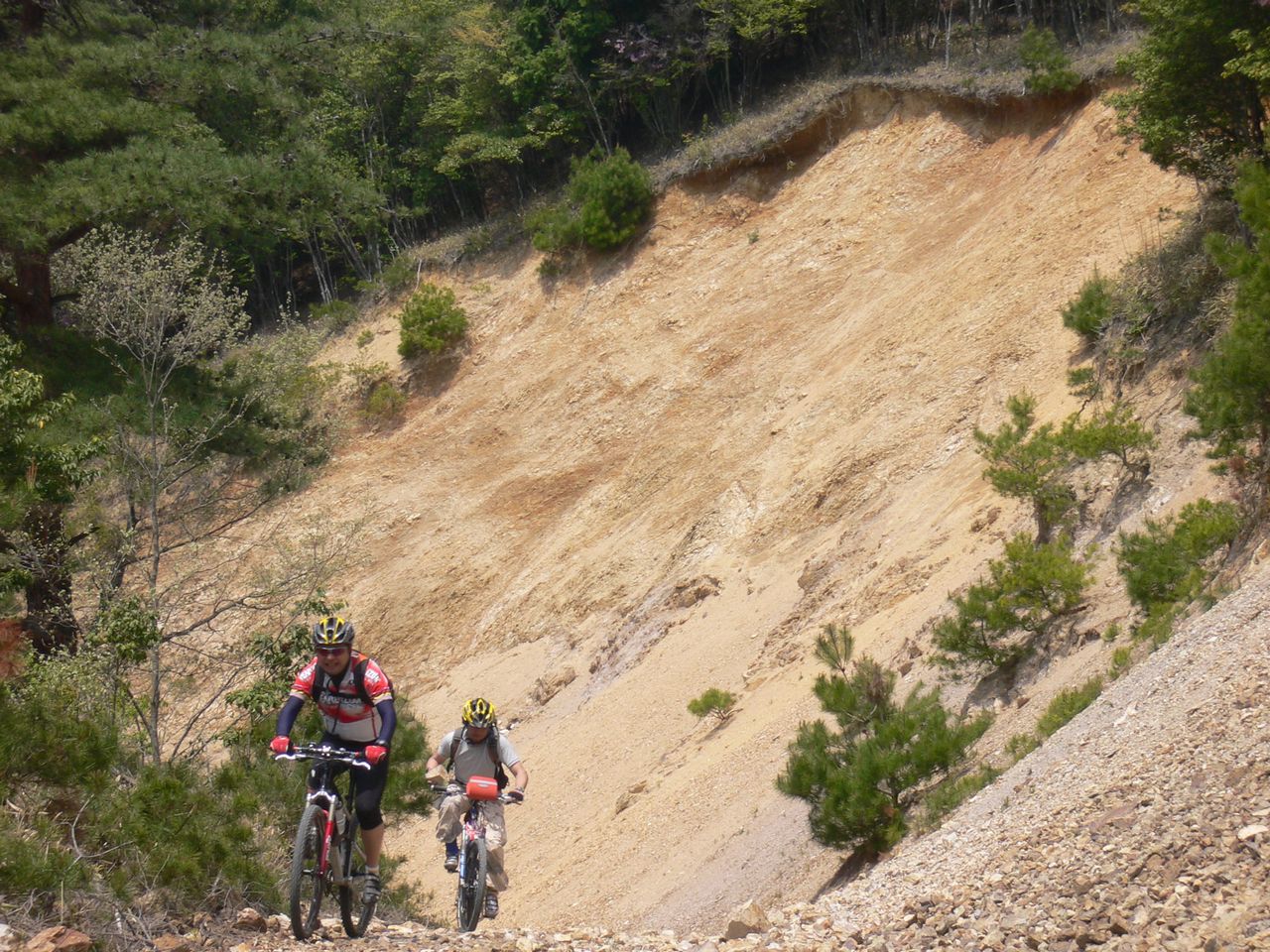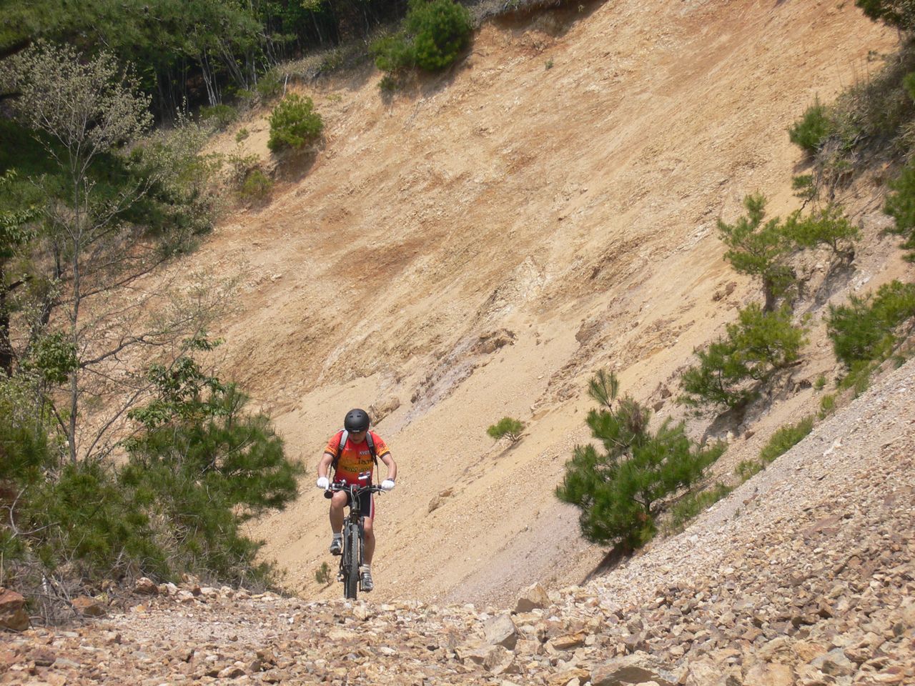 傾斜がきつくて路面もガレてます。