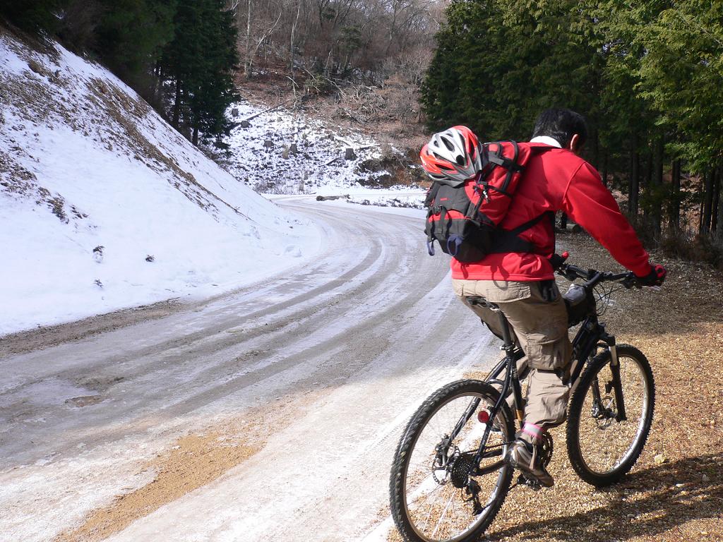 やっぱり山道ですかねー。せっかくストーブ買ったことですしMTBで。