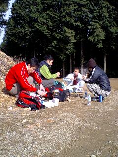 カップラーメンだったり袋ラーメンだったり野菜用意してたり。